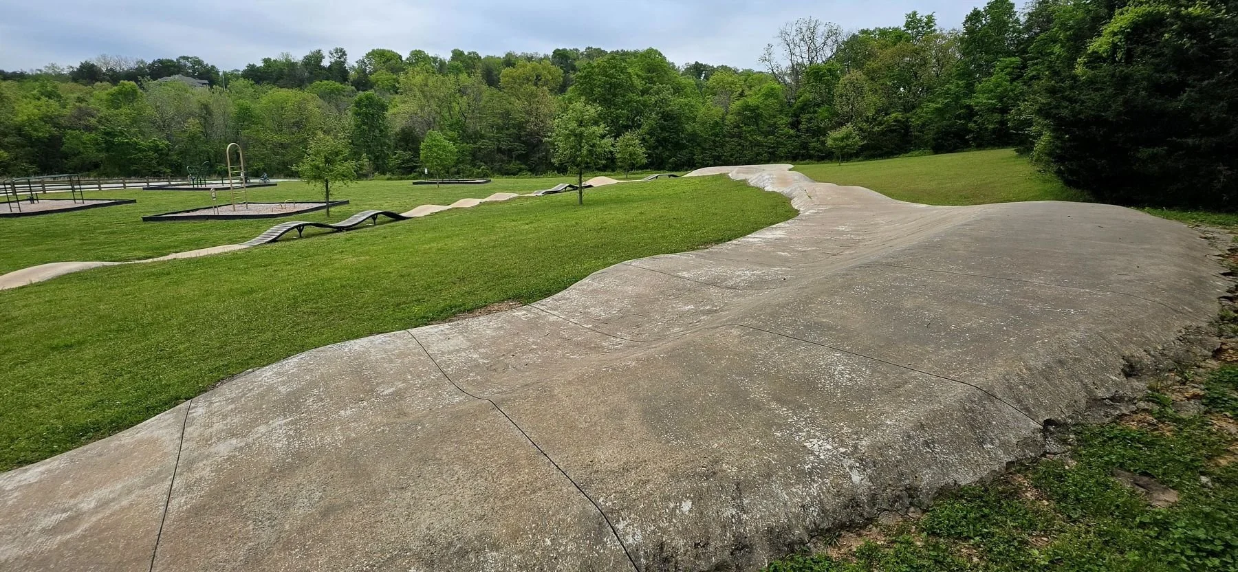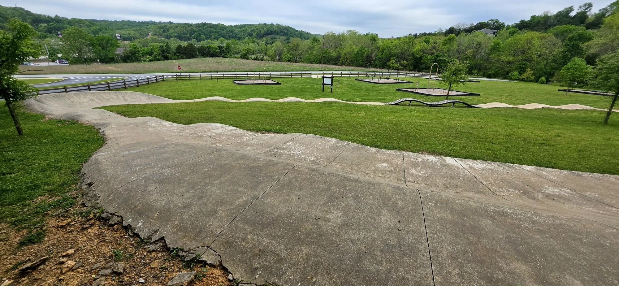 There is a small concrete pump track nearby and easily accessible from the parking lot, and it is a popular destination for those looking to hone their skills on the different rollers, concrete berms and
