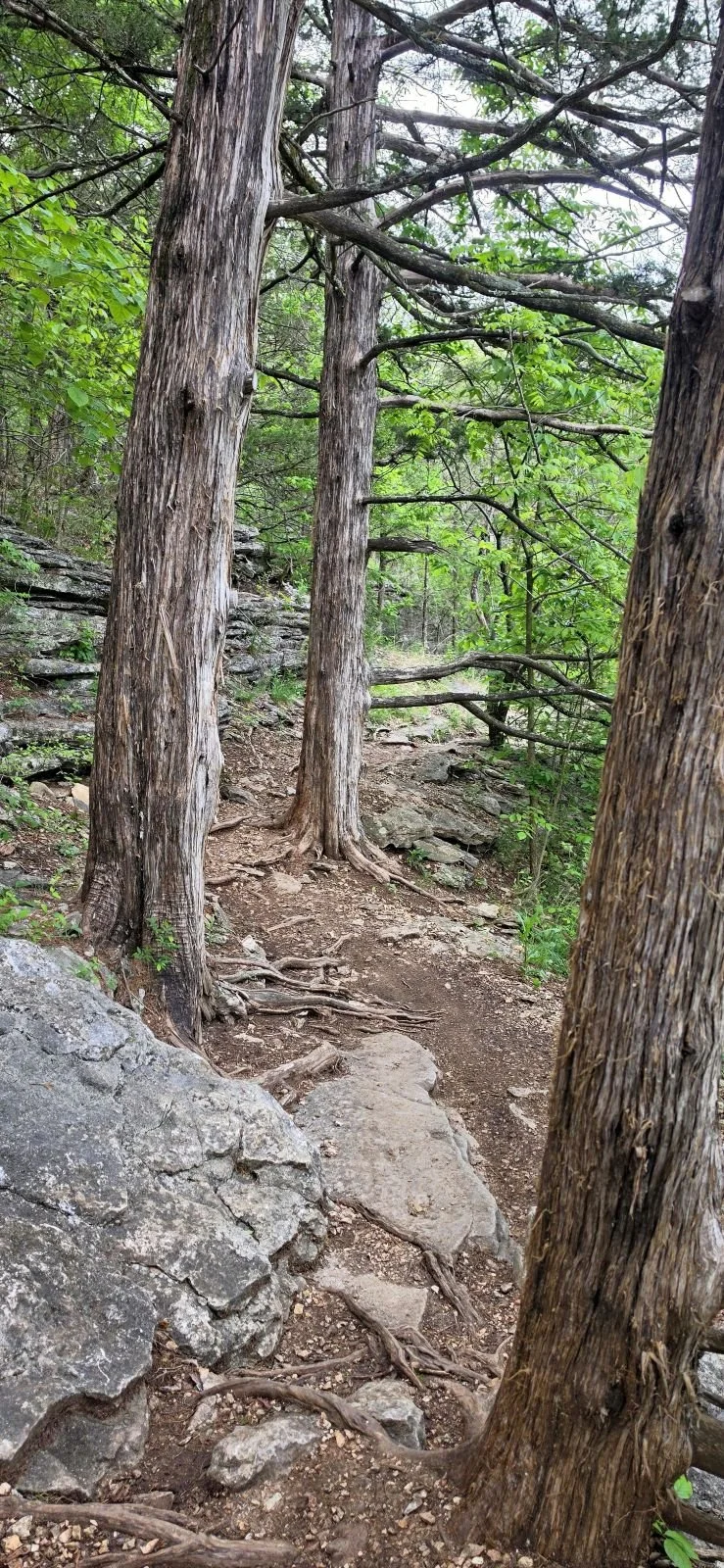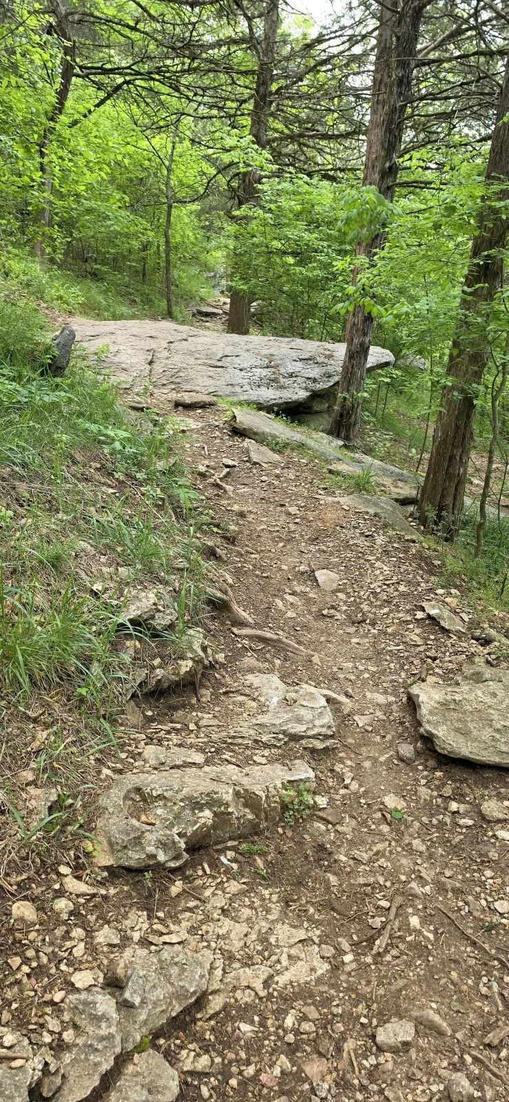 The campground sits inside the same park the trail loops around, bordered by a spring-fed creek and the same exposed Ozark terrain that defines the riding. Whether you're pulling in with a rig or setting up a tent in the woods, this is camping with a purpose.