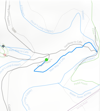 Located in Coler Mountain Bike Preserve, Meh Way to Café is a blue rated trail that offers an alternative to the direct and gnarly descent of Hardway to Café.