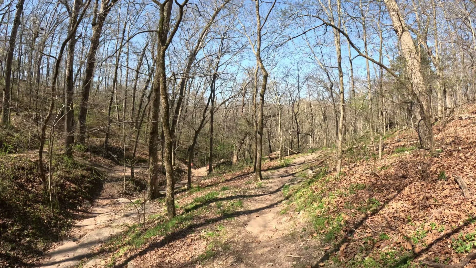 Beginning from the same upper access point, Meh Way immediately separates itself by winding down the hillside intersecting with Hardway to Cafe a few times. Instead of dropping straight into the rocky tech of the ravine, the trail takes a smoother, more controlled descent toward the café below.